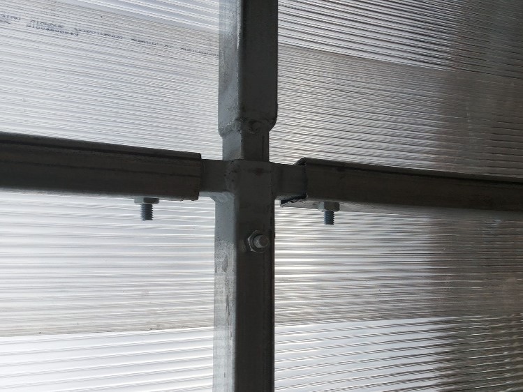 · Каркас теплицы — сварная оцинкованная профильная труба 20*30, расстояние между дугами 1 м. Сборка труба в трубу + болтовое соединение (самое прочное соединение). Цельносварные двери и форточки, которые сварены на заводе. В комплекте две двери, две форточки.
