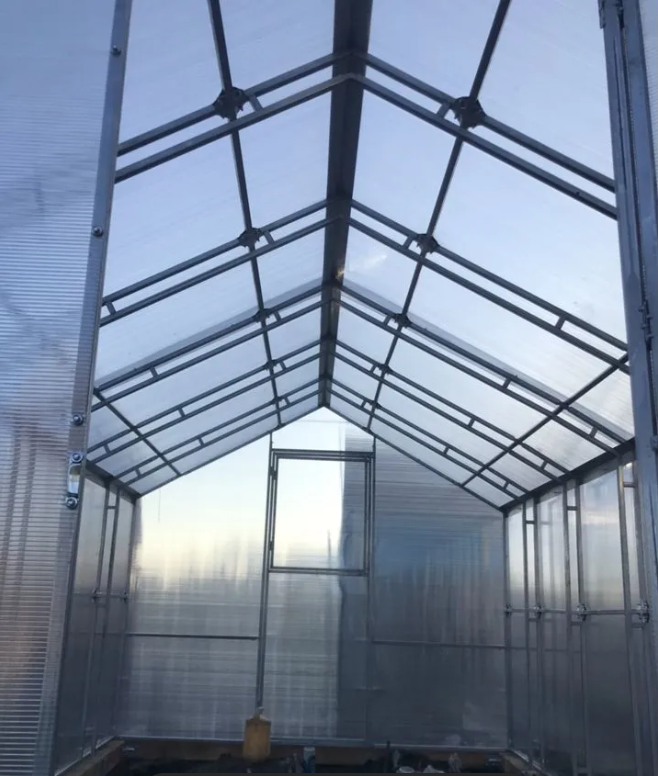 Благодаря большому воздушному объему, в теплице не происходит резких перепадов температурных режимов. Она медленнее нагревается днем и также плавно остывает ночью, создавая максимально благоприятные условия для зеленых насаждений.