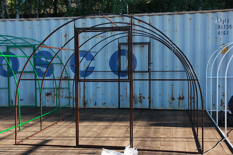 Каркас теплицы, изготовленный из профильной трубы 20х20 с полимерным покрытием и может устанавливаться прямо на грунт. В комплекте все необходимое для сборки каркаса теплицы и надежного крепления покрытия, а так же подробная иллюстрированная инструкция с этапами сборки. Способ соединения- труба в трубу. Каркас теплицы (арки) выдерживает нагрузки до 60кг\мп и ветровые 15м\с, при этом обязанность надежного крепления теплицы к фундаменту или грунту остается за покупателем.