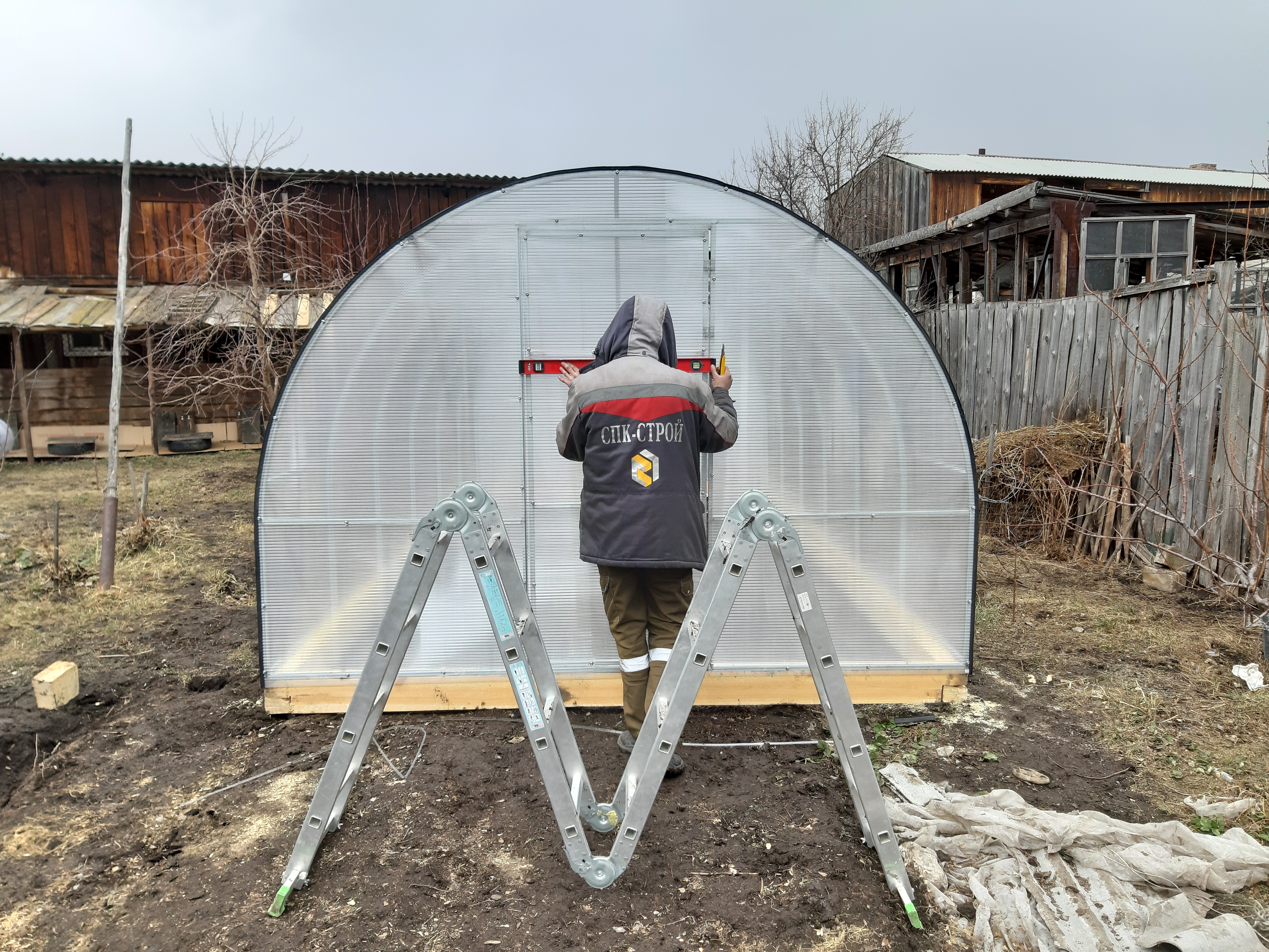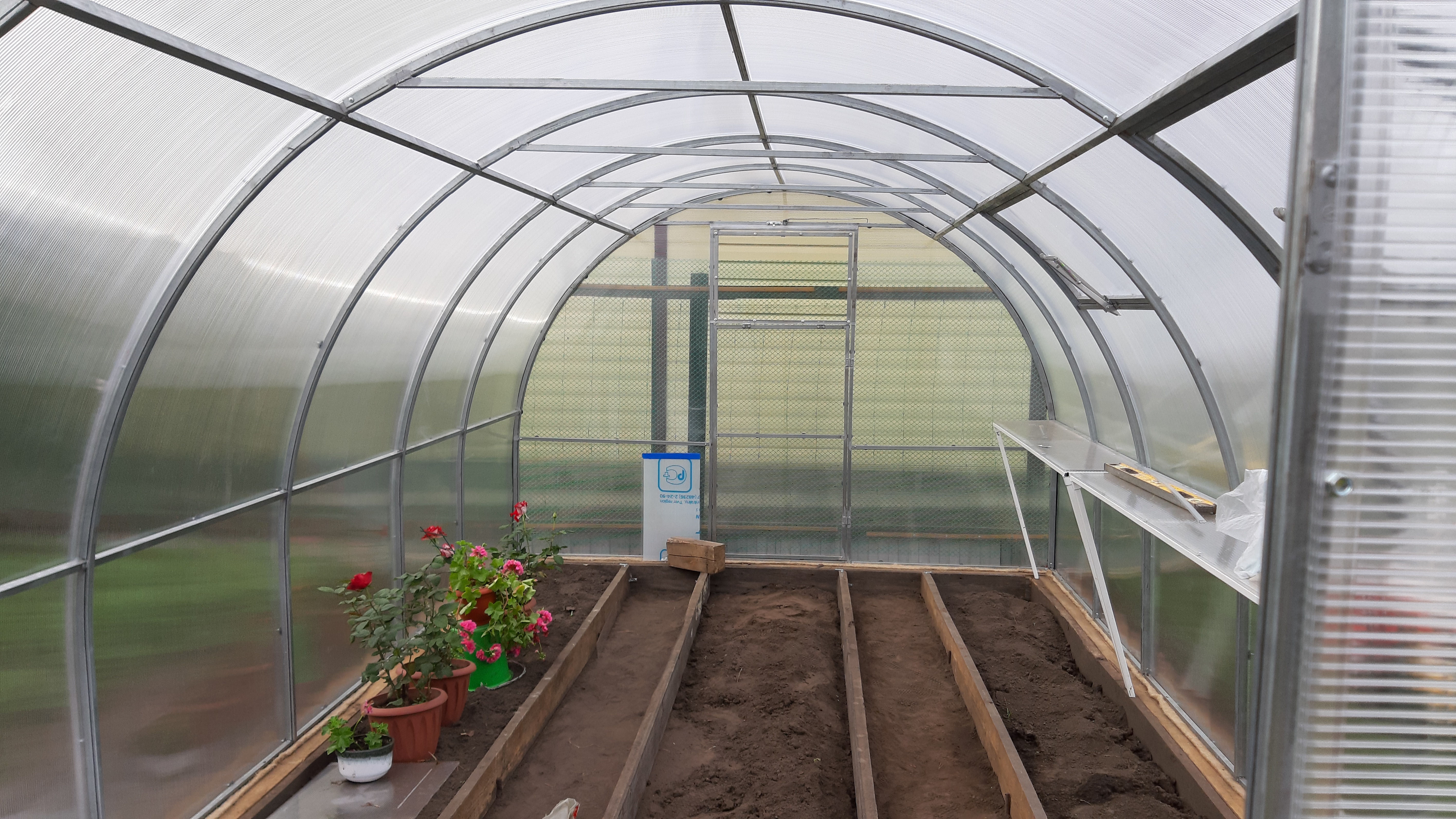 Базовые размеры теплицы: Ширина — 3 м; Высота — 2.1 м. Модули по 2 м.